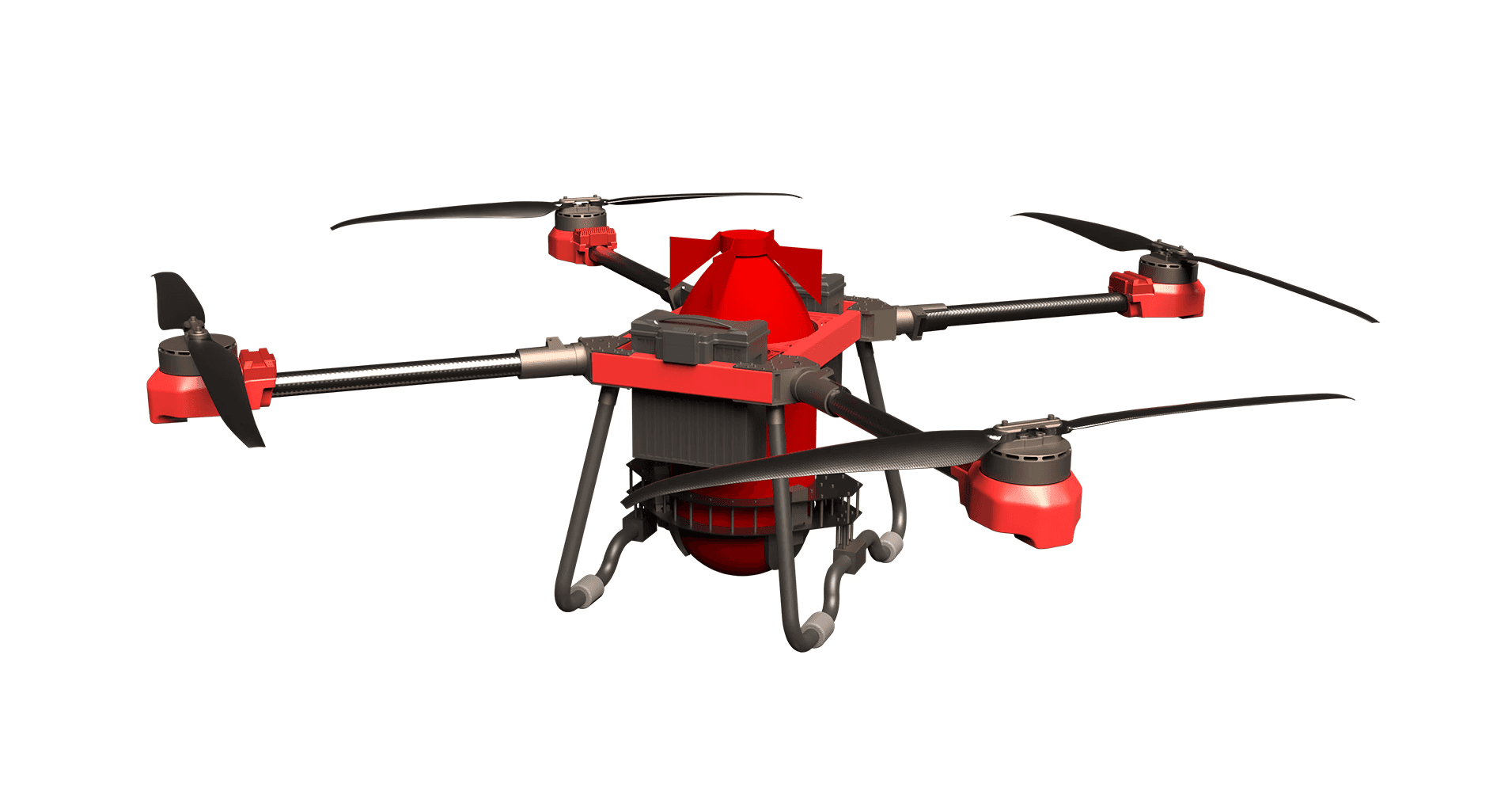 Designed to carry an 80 kg payload, this electric quadcopter serves as a powerful fire-extinguishing vector, enabling rapid deployment of suppression tools in emergency situations.